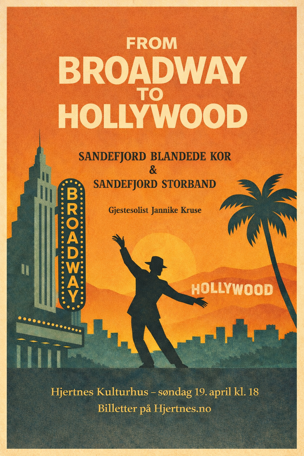 Søndag 19. april samler vi kreftene. Sammen med selveste Jannike Kruse som gjesteartist framfører vi et solid knippe av herlige melodier hentet fra film og scene. Menyen inneholder fellesnumre med både trøkk og groov, med og uten solister, og krydres med rene kor- og storbandinnslag. Noe for enhver smak altså, og en sjelden anledning til å oppleve koret, Storbandet og en helt fantastisk musikalartist sammen på Hjertnes. Vi som skal være med, gleder oss stort !!